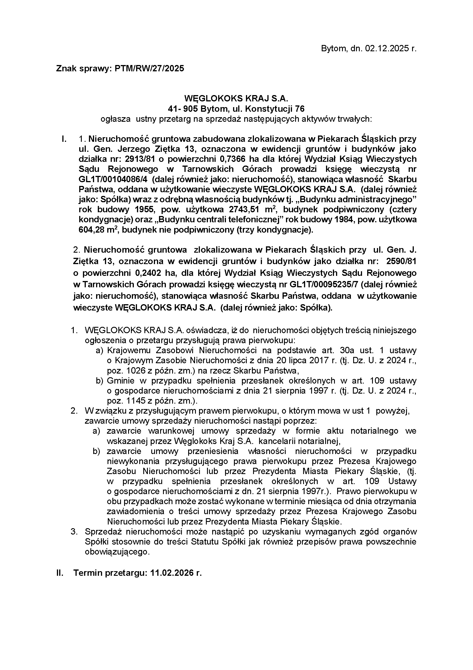 Przetarg PTM/RW/27/2025 na sprzedaż działek nr 2913/81, 2590/81 z budynkami