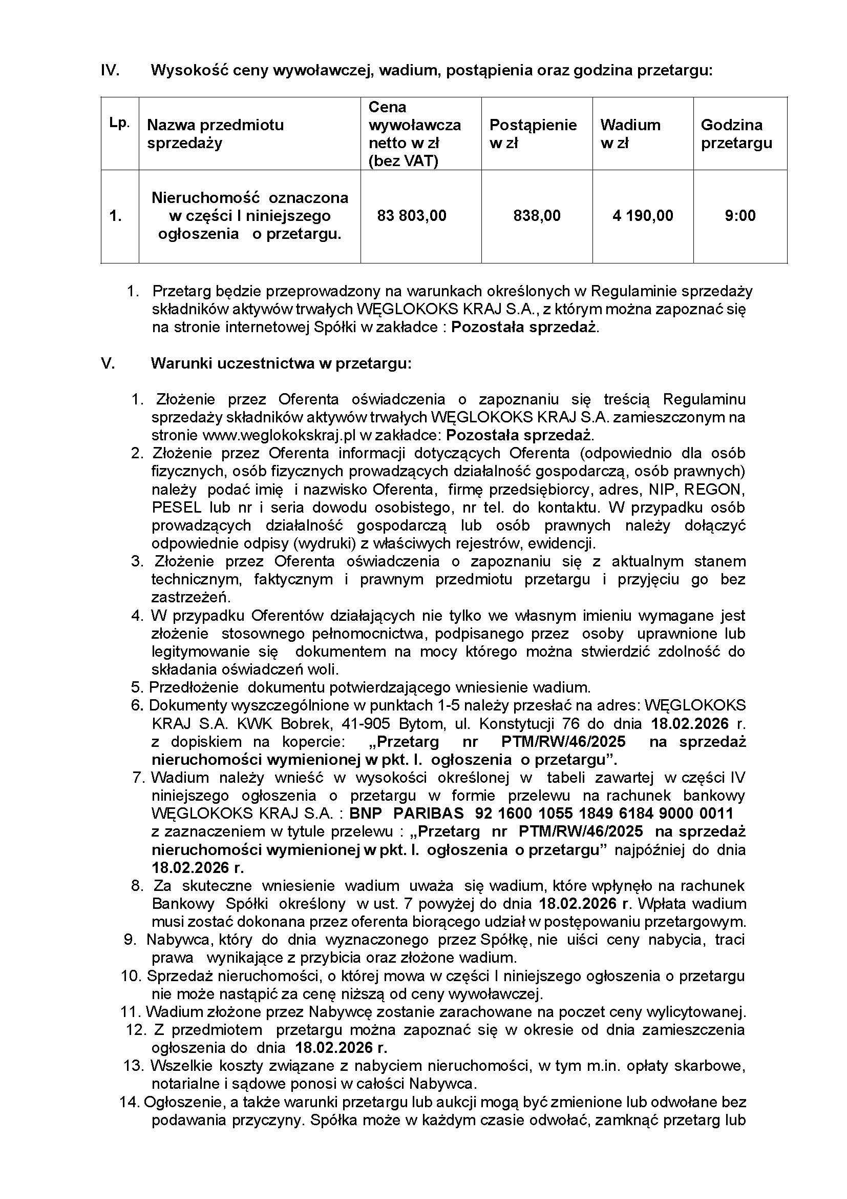 Przetarg PTM/RW/46/2025 na sprzedaż działki nr 1311/224