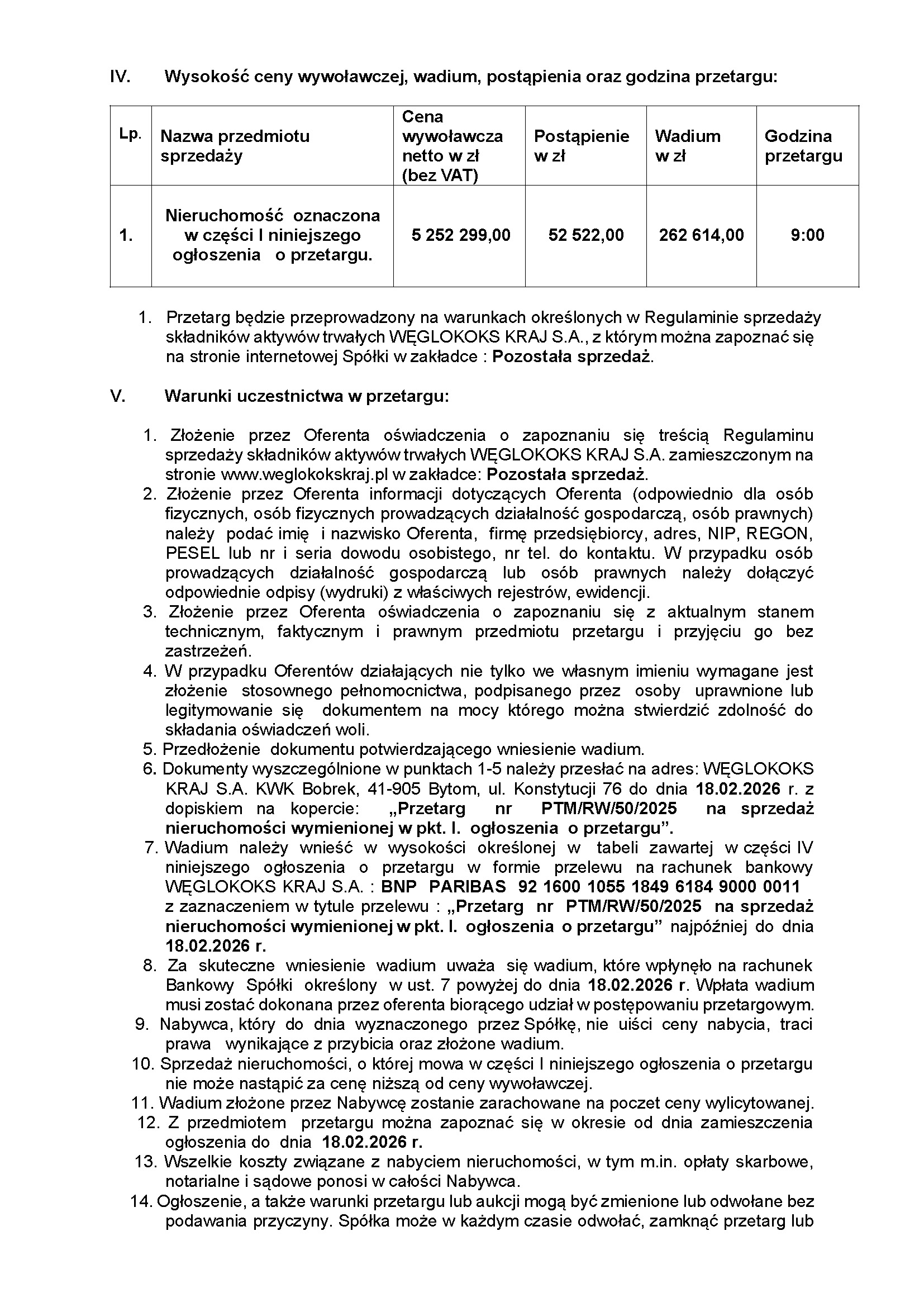Przetarg PTM/RW/50/2025 na sprzedaż działki nr 2875/84