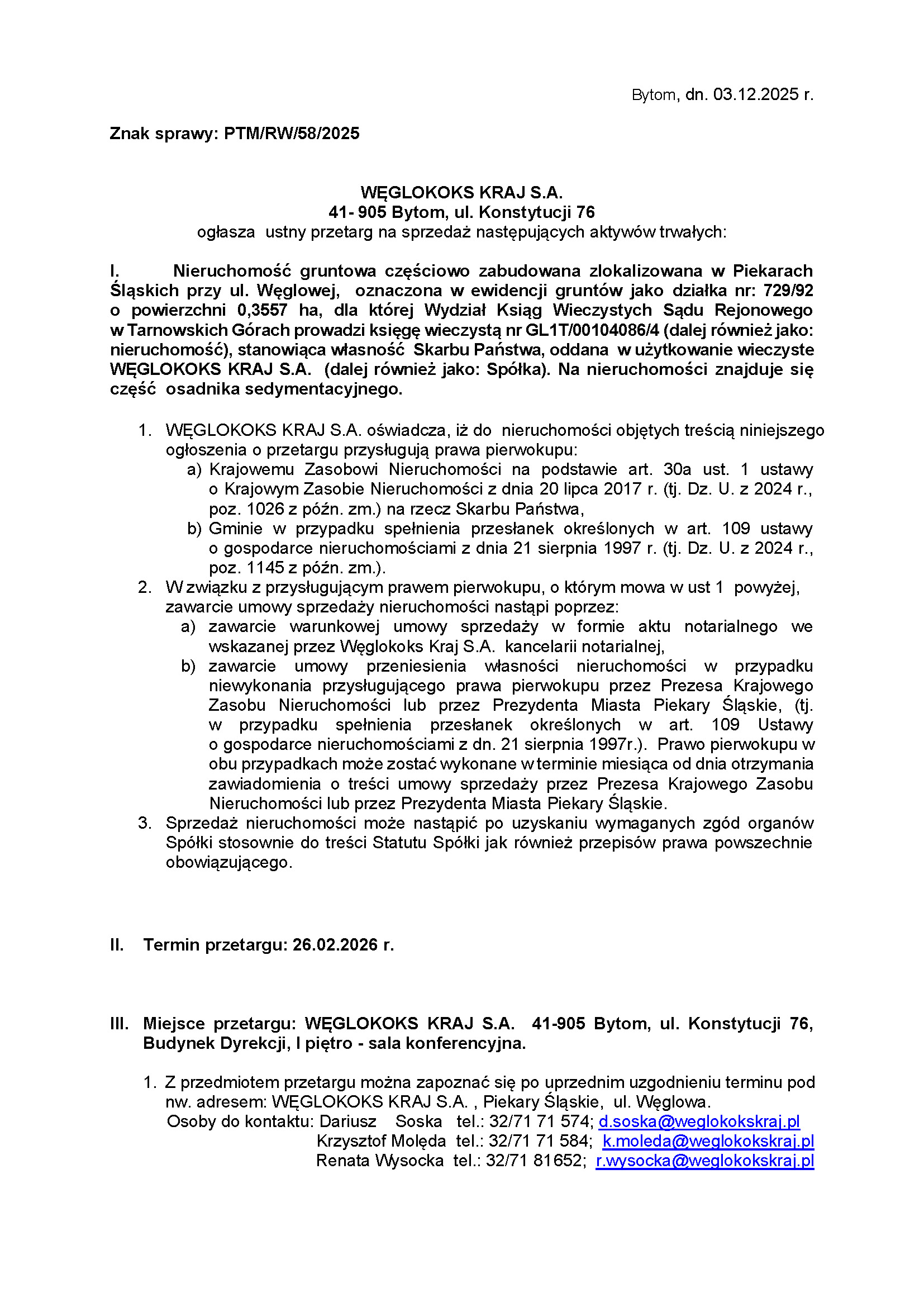 Przetarg PTM/RW/58/2025 na sprzedaż działki nr 729/92