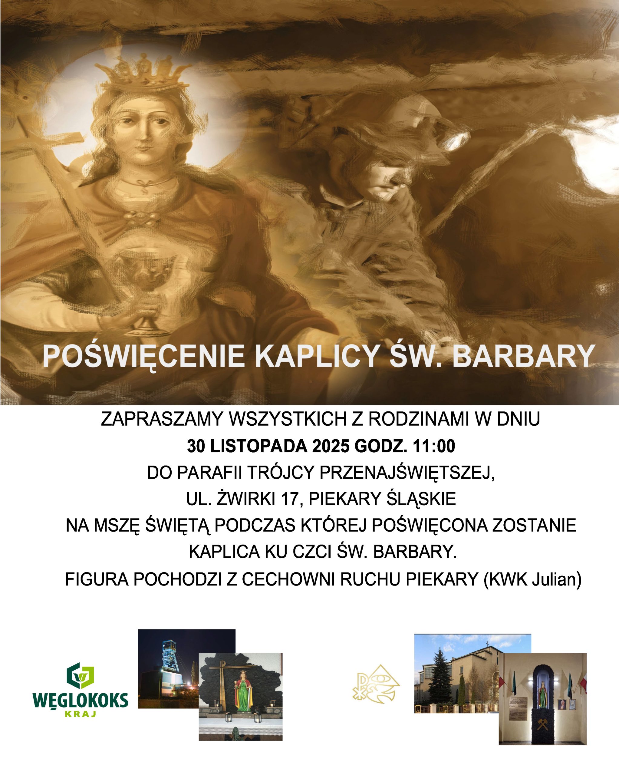 Zaproszenie na Poświęcenie Kaplicy Św. Barbary